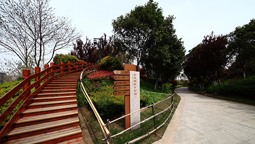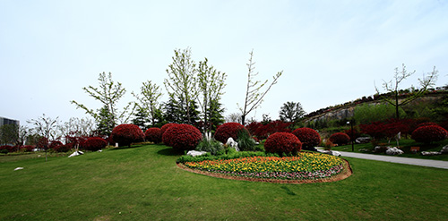 为恢复植被,修复裸露的山体,工程中应用了大量的植物,其中,榔榆、喜树、朴树、三角枫、黑松、香樟、银杏、无患子、女贞、栾树、七叶树、五角枫、枫香、雪松、乌桕、广玉兰、黄连木、黄金槐、马褂木等乔木50余品种,2.3万余株,乡土树种占88%;垂丝海棠、映山红、樱花、紫薇、金丝绣球、含笑、紫叶李、茶梅、红梅、红栌等花灌木100余品种,2.5万余株;红叶石楠、金森女贞、扶芳藤、南天竹、洒金珊瑚、水果兰、六道木、柽柳、卫矛、无刺枸骨、毛鹃、连翘、金钟、迎春、红花檵木等绿篱40余品种,面积约4.1万平方米;各种宿根、球根、时令花卉和水生植物,如薰衣草、金鸡菊、郁金香、鸢尾、牡丹、金丝桃、珍珠梅、绣线菊、美人蕉、荷兰菊、蒲公英、亚菊、玉龙草、八仙花、琼花、月季、蔷薇等80余品种,面积约2.8万平方米;铺设草坪及地被麦冬等面积约8.7万平方米。丰富的植物应用,使得原本裸露的山坡披上了绿色的盛装,公园内,春有百花争艳,夏有绿荫匝地,秋有金色满园,即使到了冬天,也仍能看到满山的绿色与生机。