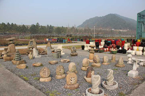 陶罐组合、山石组合其外缘线比较自然,一般不再单独围护。