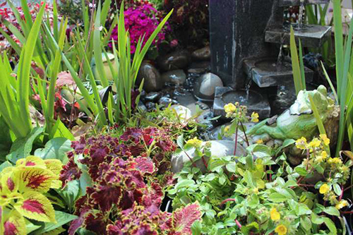 鹅卵石使溪水流淌更趋自然,美丽的铁艺姑娘在花园中劳作。仔细看,旁边还有青蛙王子乐队的婉转音乐。这些小细节,增加了花境的趣味性。