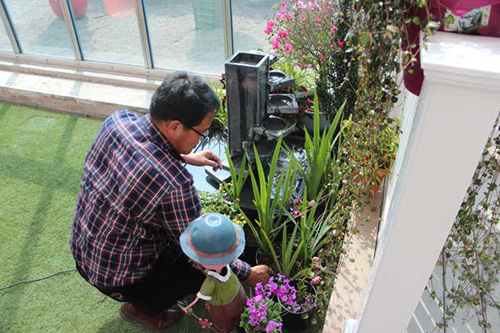 另外,阳台、露台、庭院景观往往依墙体、栏杆而建,故可依托这些构筑物悬挂吊兰、常春藤、扶芳藤等垂吊类植物,还可根据自己的喜好摆放多肉盆栽、组合盆栽,甚至是盆景等。