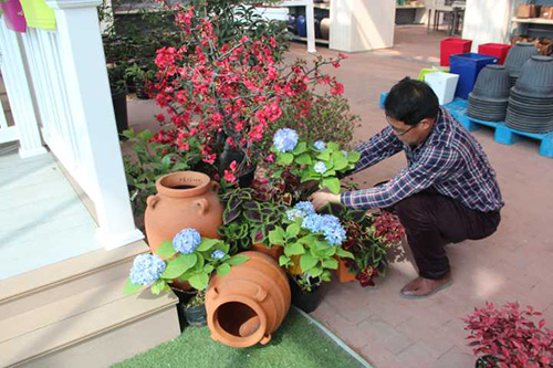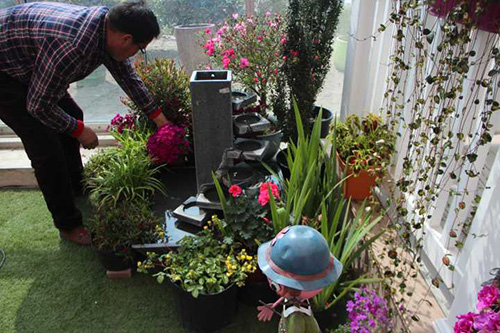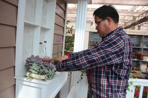 在园艺中心选购打造一米花园所需的园林小品、植物材料及其他辅材。