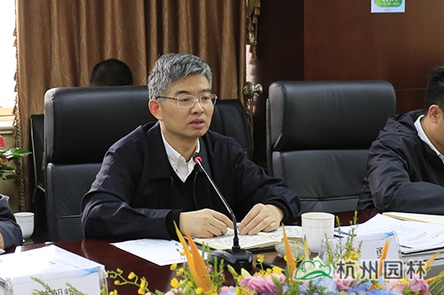 范区长在听取情况汇报后,首先肯定了杭州园林近年来取得的成绩,同时指出,作为多家行业协会的会长单位,杭州园林应进一步巩固行业地位,引领行业发展,并创新进取,争取打造更多优质样板工程,助力江干城市园林建设,并守正创新,为江干区的经济发展做出积极贡献。