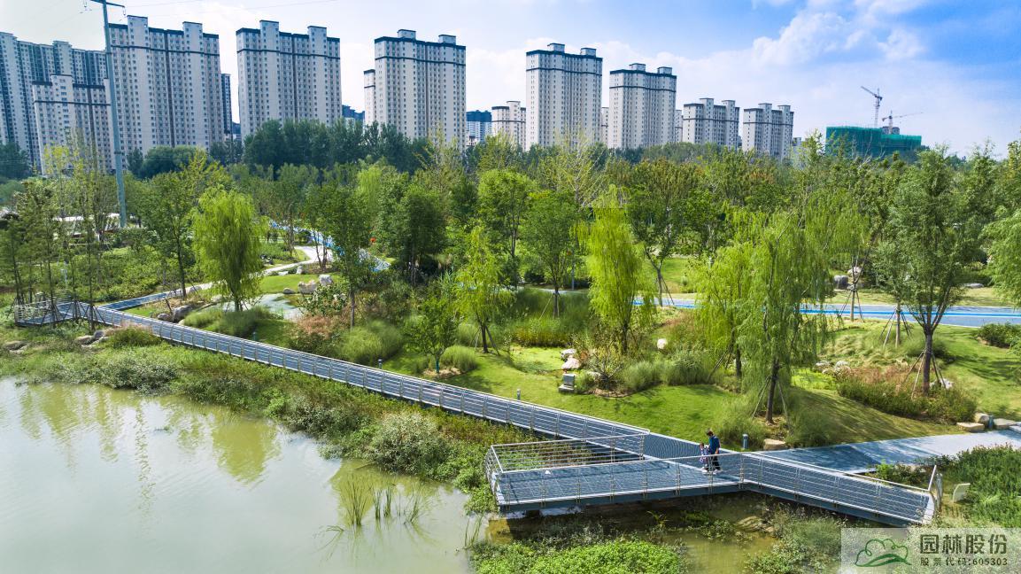 项目通过连通沛县新老城区的绿色基础设施建设,开敞的绿色空间和连续的绿道系统,巧妙设置了跨水栈桥、悬水平台、水台阶、近水游步道等,让城市居民能够近距离的接触自然野趣,人和自然在其中和谐共处 。