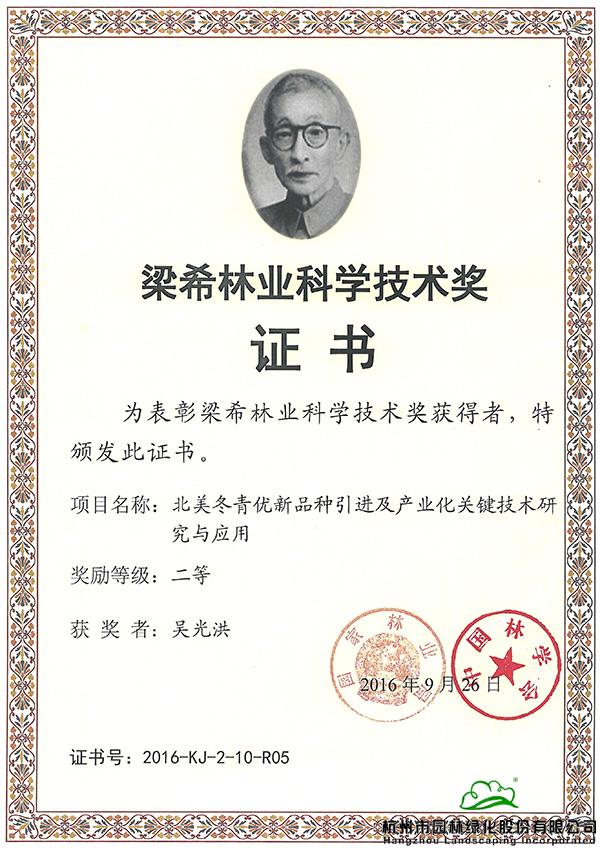 梁希林业科学技术二等奖