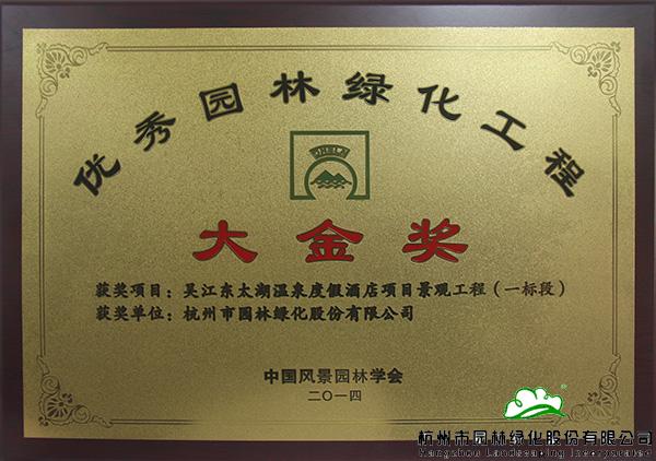 “中国风景园林学会‘优秀园林绿化工程’大金奖”